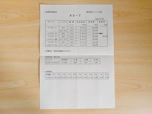 Item Rx-7 Fd3S Over-The-Counter Cash Price List As October 1991 Infini Yaman
