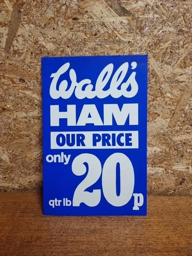Vintage Wall's Walls Ham Price Advertising Sign Show Card Shop Counter Co Op