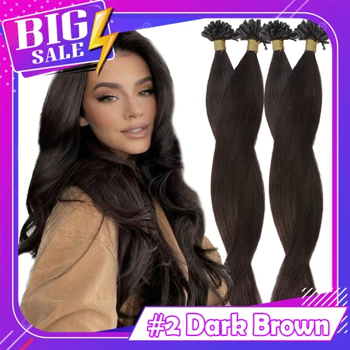 18" 100% Real Hair Keratin Pre Bonded Nail U Tip Glue Remy.Human Hair Extensions