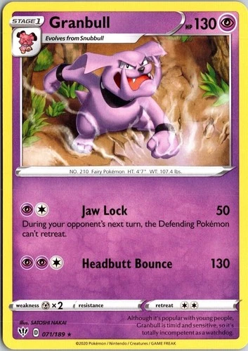 Granbull Darkness Ablaze 071/189 Rare 2020 Pokemon Card TCG CCG