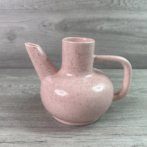 Vintage A C DAVEY Mid Century Modern California Pottery Speckled Pink Teapot MCM
