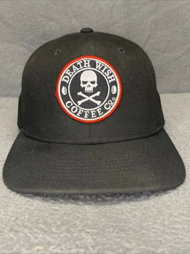 Death Wish Coffee Black Flat Bill SnapBack Hat Cap Embroidered Death Wish Logo
