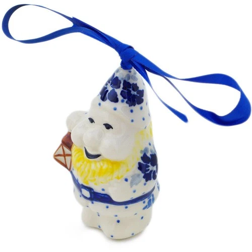 Polish Pottery Gnome Ornament 4" December's Blooms UNIKAT