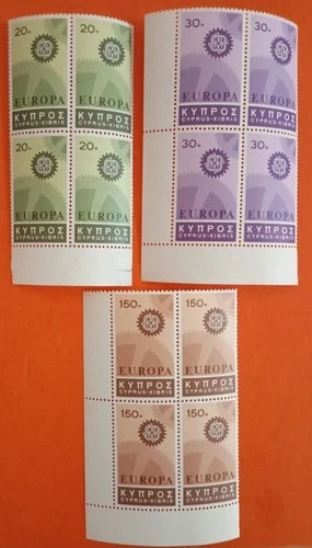CYPRUS-1967 Europa Cog Wheels, set of 3 values. Blocks of 4 in MNH condition.