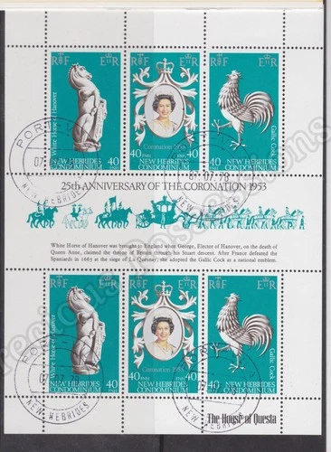 New Hebrides USED QEII 25th Anniversary Coronation 1978 Stamp Sheet SG 262-264
