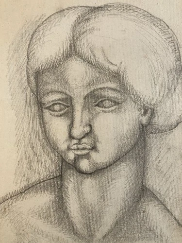Portrait Drawing Pencil Paper Woman 1920 New Décor Antique Belle Époque 20th