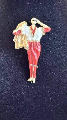 Vintage Art Deco Art Nouveau Brooch Pin Red Lady