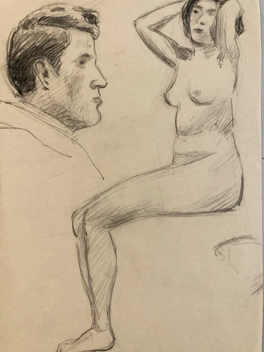 Beautiful Vintage Nude Drawing 1910 Pencil Paper Woman Erotic Art Deco Studio