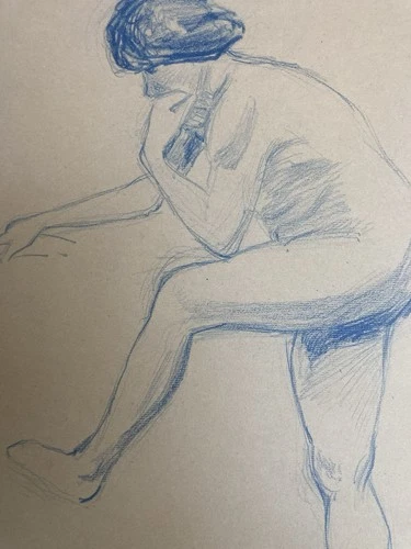Antique Nude Drawing Pencil On Paper Woman 1910 Erotic Art Deco Blue Standing