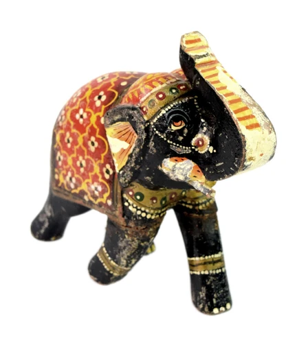 Vintage Wooden Painted Elephant Statue Decorative Rising Trunk elephant i71-608