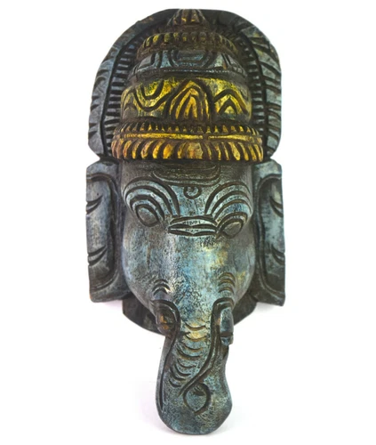 Vintage Ganesha Wooden Mask Nice Decorative Indian Religious Decor i71-371