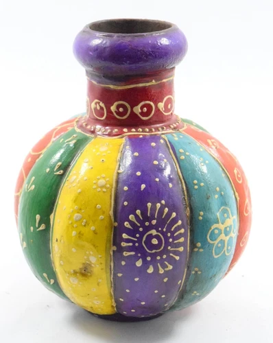 Vintage highly Decorative Handmade Beautiful Painted Folk Art Iron Pot. i37-50