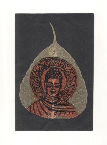 Buddha Painting Dry Leaf Art Indian Peepal Leaf Handmade Home Decor. i54-349
