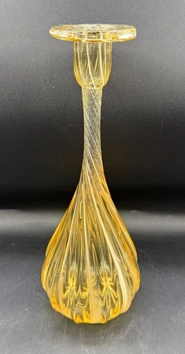 Handblown Art Glass Spiral MURANO Venetian Amber Yellow VASE / Candleholder