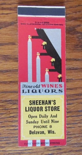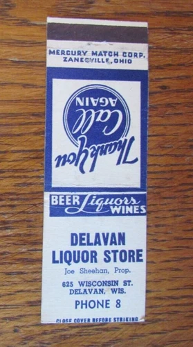 LOW PHONE # 8 MATCHBOOK COVER: SHEEHAN'S LIQUOR STTORE DELAVAN, WI MATCHCOVER -B