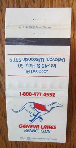 GREYHOUND RACING DOG MATCHCOVER: GENEVA LAKES KENNEL CLUB DELAVAN WISCONSIN -D11