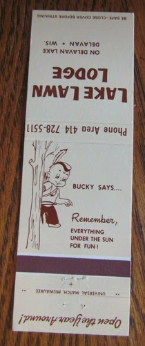 INDIAN ON MATCHBOOK MATCHCOVER: LAKE LAWN LODGE (DELAVAN, WISCONSIN) -E16