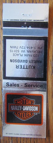 MOTORCYCLE MATCHBOOK COVER: HARLEY-DAVIDSON DELAVAN, WISCONSIN MATCHCOVER -D15