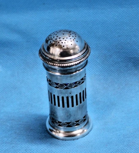 Antique Silver Plate Cobalt Blue Glass Saltshaker Vintage