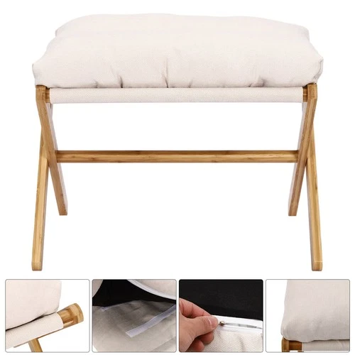 Footstool Upholstered Footrest Modern Folding Foot Stool With Detachable Cushion