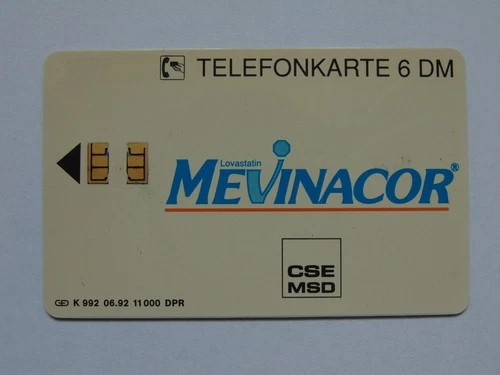 6 DM telephone card, Mevinacor, Lovastatin, from 1992, K992