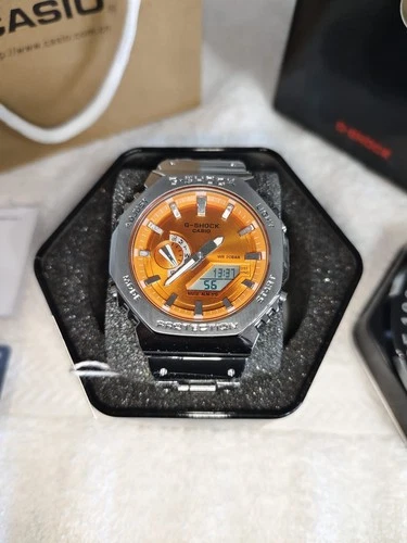Casio G-Shock mens G-steel Orange Dial GM2100D-4AER Digi-analog Watch