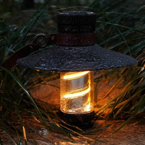 LED Camping Lantern Type-C Rechargeable Stepless Dimmable Waterproof Tent Lamp Black