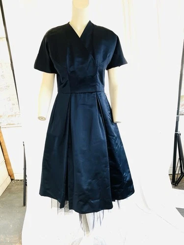 Christian Dior New York Vintage 1950s Peau De Soie Silk Cocktail Dress