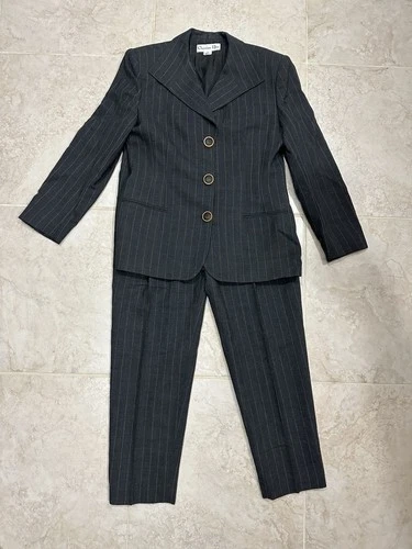 Vintage Christian Dior Wool Pinstripe Pant Suit Size 12 Grey