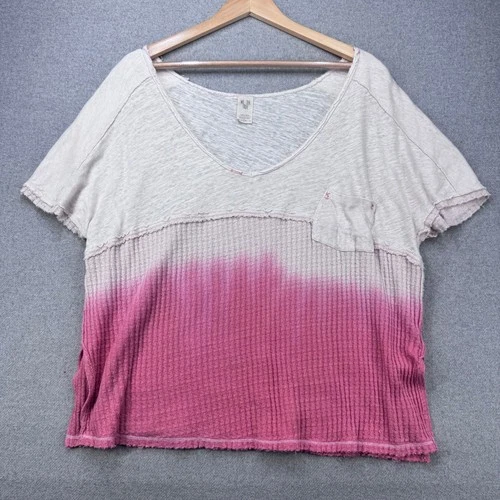 We The Free Dip Dye Top Womens Small Pink Waffle Knit Linen Blend Boho Top
