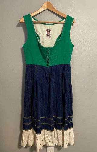 German Dirndl Dress Blue EMBROIDERED Oktoberfest Festival Size 32 M 14-15” PTP