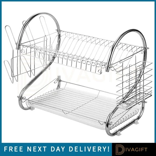 2 TIERS DISH DRAINER RACK-CUTLERY CUP CHOPPING BOARD HOLDER-FOR KITCHEN COUNTER