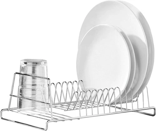 Chrome Rectangular Dish Rack Holds 12 Plates and Mug Section, Countertop Space