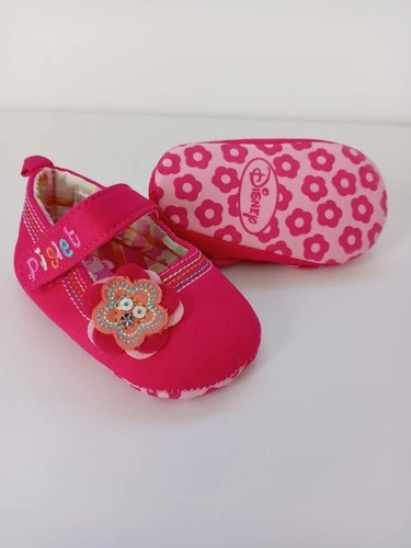 Disney Piglet soft shoes with adjustable strap. 3-6months Bright Pink baby
