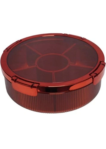 HOUSIO Snackle Box Container, Round Divided Serving Tray with lid 6parts (Red)