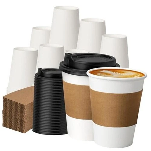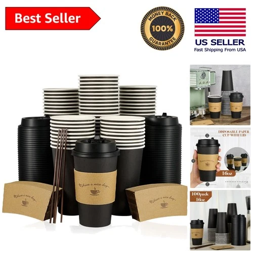 Eco-Friendly 100 Count of 16 oz Disposable Coffee Cups with Safety Sleeve & Lids