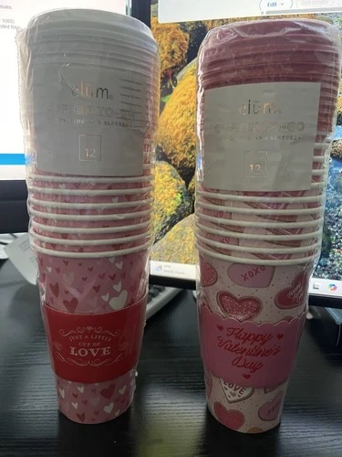 Elum Valentine’s Day Disposable Coffee Cups Set of 24 with Lids Sleeves