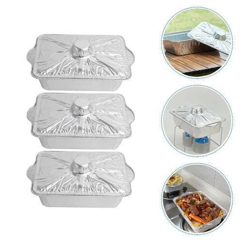 3 Pcs Baking Pans Roasting with Lid Disposable Oven Aluminum Foil