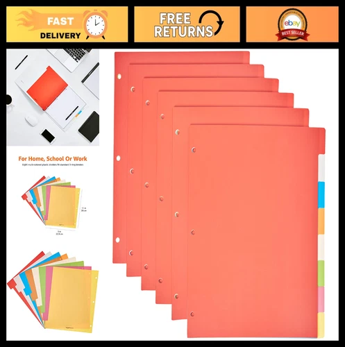 8-Tab Plastic Binder Dividers with Multicolor Labels for 3 Ring Binders, 48 Sets