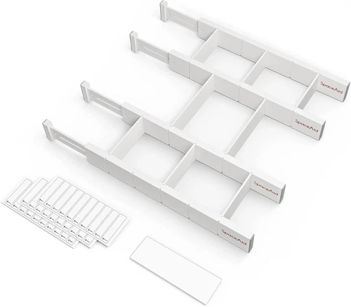 Bamboo Drawer Dividers with Inserts and Labels, Kitchen Adjustable Drawer Organi