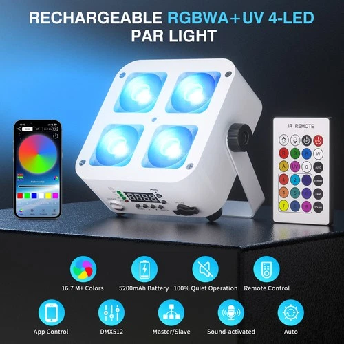 4x25W RGBWA UV LED Par Light Rechargeable Battery DMX Wireless App Control