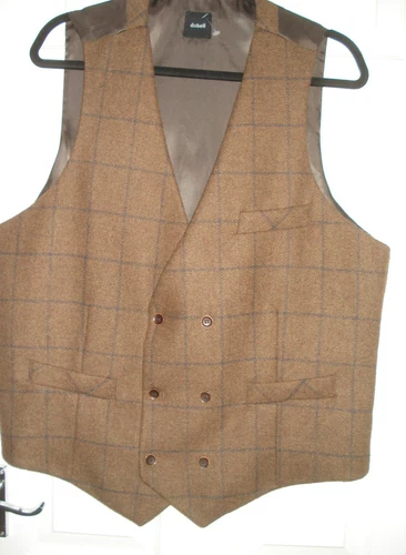 Brown Tweed Waistcoat Tailored Check Peaky Blinders Wedding Mens Size L 42/44