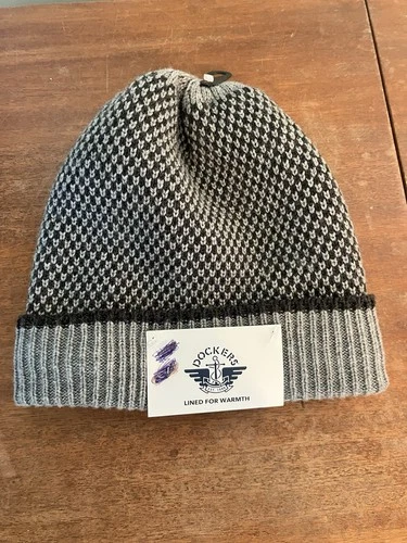 New Dockers Charcoal Knot Beanie Hat Lined For Warmth