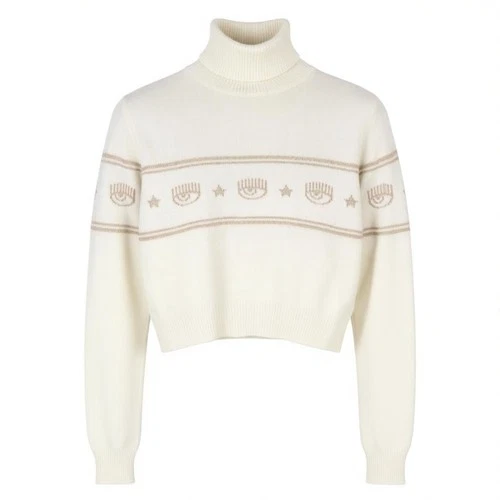 CHIARA FERRAGNI Women Jumper 2XS White Wool Cashmere Crop Knit RRP225