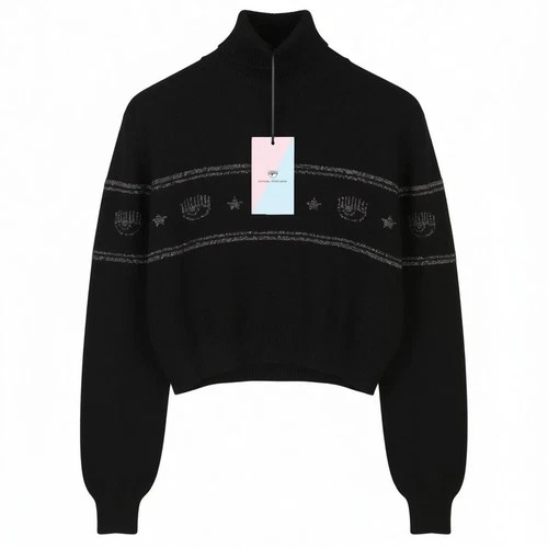 CHIARA FERRAGNI Maxilogo Lurex Women Jumper M Black Wool Cashmere RRP220