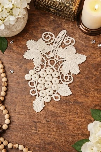 Vintage Handmade Crochet Grape Doily White Table Decor 10” Long