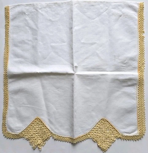Doily Dresser Scarf Vtg Yellow Tatting Edge Table Runner Grannycore 18"x36.5"
