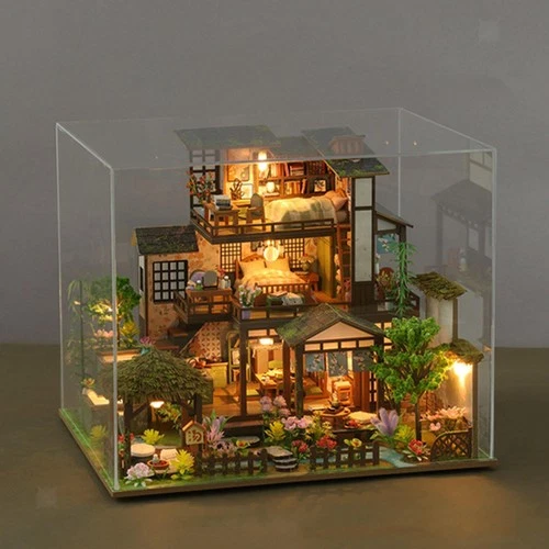 DIY Miniature Dollhouse Kits Handmade Doll Decor with Lights with Dustproof