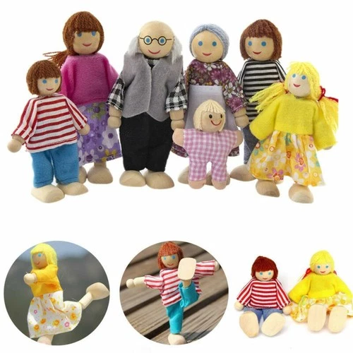 Wooden Family Dolls House Family Flexible Wooden Doll House People Figures