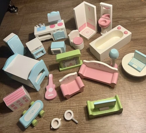 Dolls House Wooden Furniture 1:16 Bundle Kitchen Bedroom Lounge Bathroom 20+ Pcs